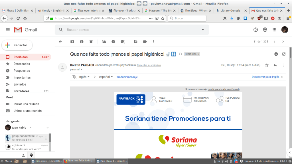 Soriana me escribe un mail con un tono pasional. Habla acerca de aquello que, ante la catástrofe climática, resulta crucial: «Que nos falte todo», me dice, «¡menos el papel higiénico!».